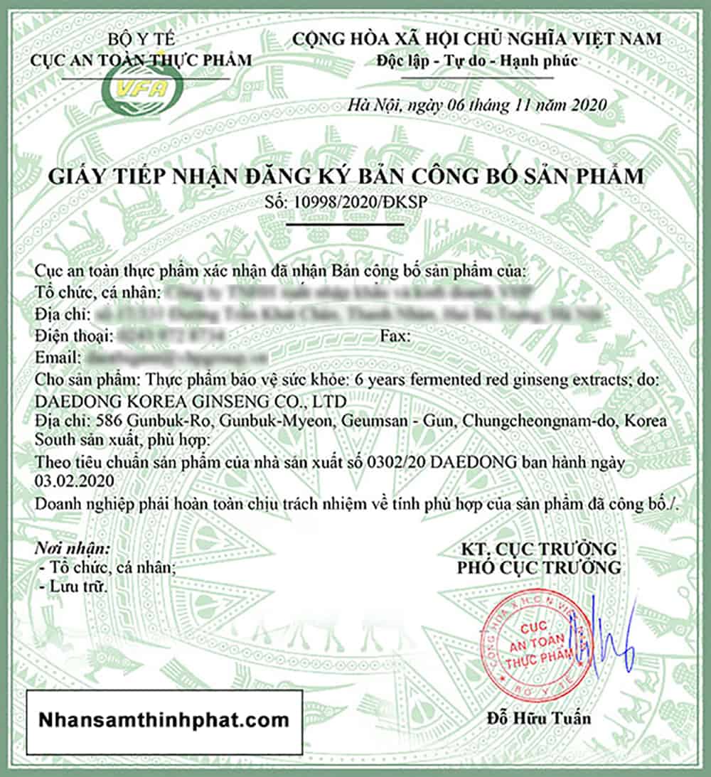 ➢ Nhà sản xuất: Daedong Korea Ginseng