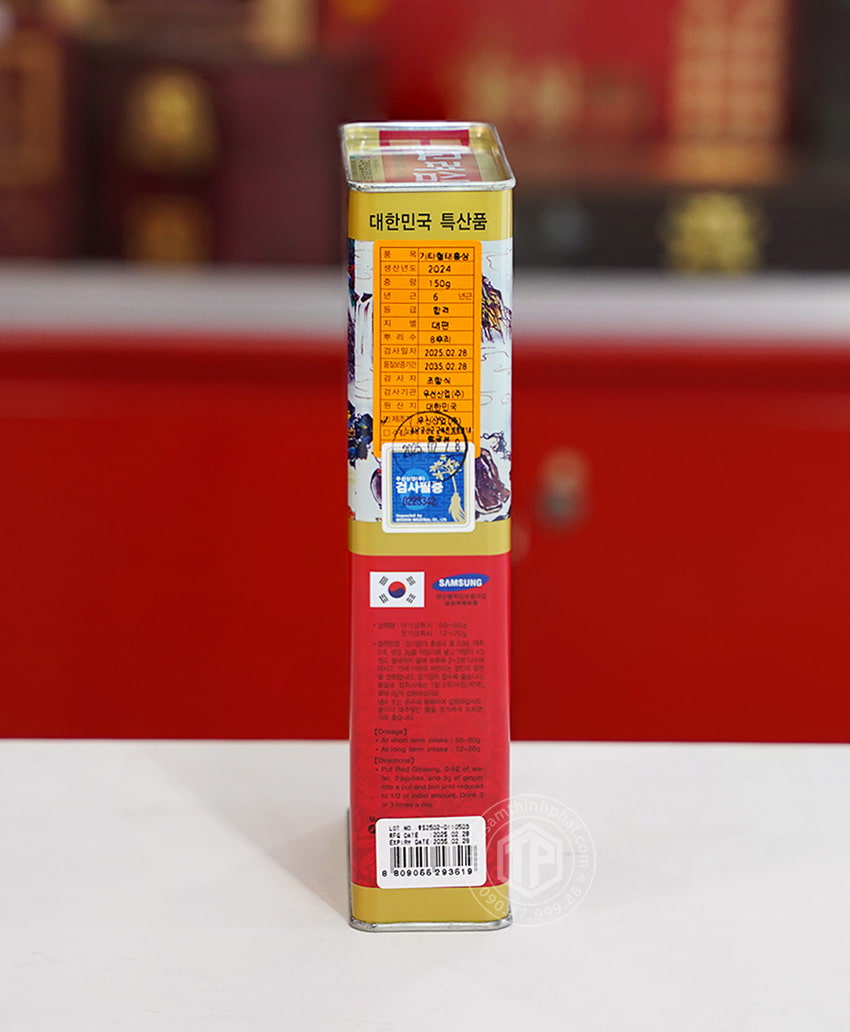 ✔ Được làm từ củ nhân sâm 6 năm tuổi trồng ở khu vực không bị ô nhiễm trong điều kiện canh tác hồng sâm tối ưu, với hệ thống kiểm soát chất lượng nghiêm ngặt, hấp và sấy khô dưới 14% hàm lượng nước nên củ sâm cứng dễ bảo quản và thời hạn sử dụng được lâu dài.