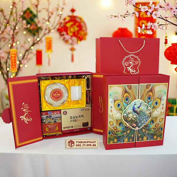 Xuân 2026, Thịnh Phát trình làng các mẫu hộp quà Tết sang trọng, ý nghĩa với thiết kế hiện đại, bắt kịp xu hướng. Tùy theo sở thích hay nhu cầu biếu tặng mà quý khách có thể yêu cầu nhân viên lựa chọn cho riêng mình một set quà tặng theo ý muốn.
