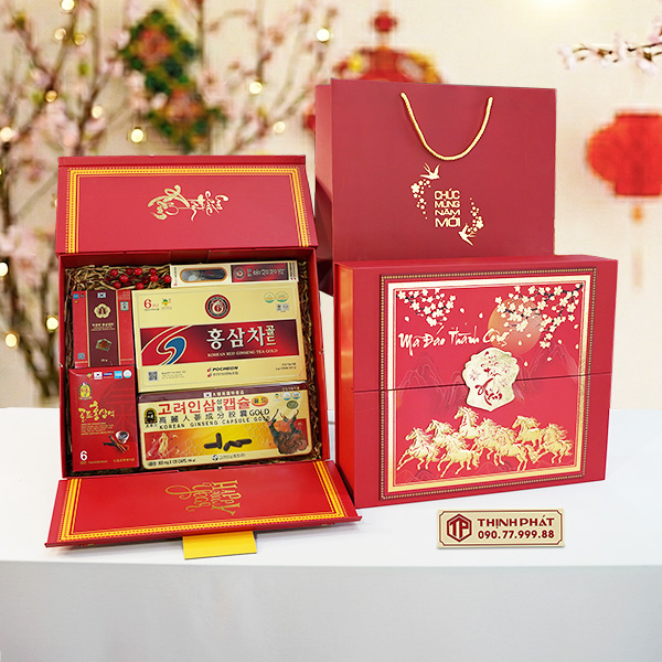 Xuân 2026, Thịnh Phát trình làng các mẫu hộp quà Tết sang trọng, ý nghĩa với thiết kế hiện đại, bắt kịp xu hướng. Tùy theo sở thích hay nhu cầu biếu tặng mà quý khách có thể yêu cầu nhân viên lựa chọn cho riêng mình một set quà tặng theo ý muốn.